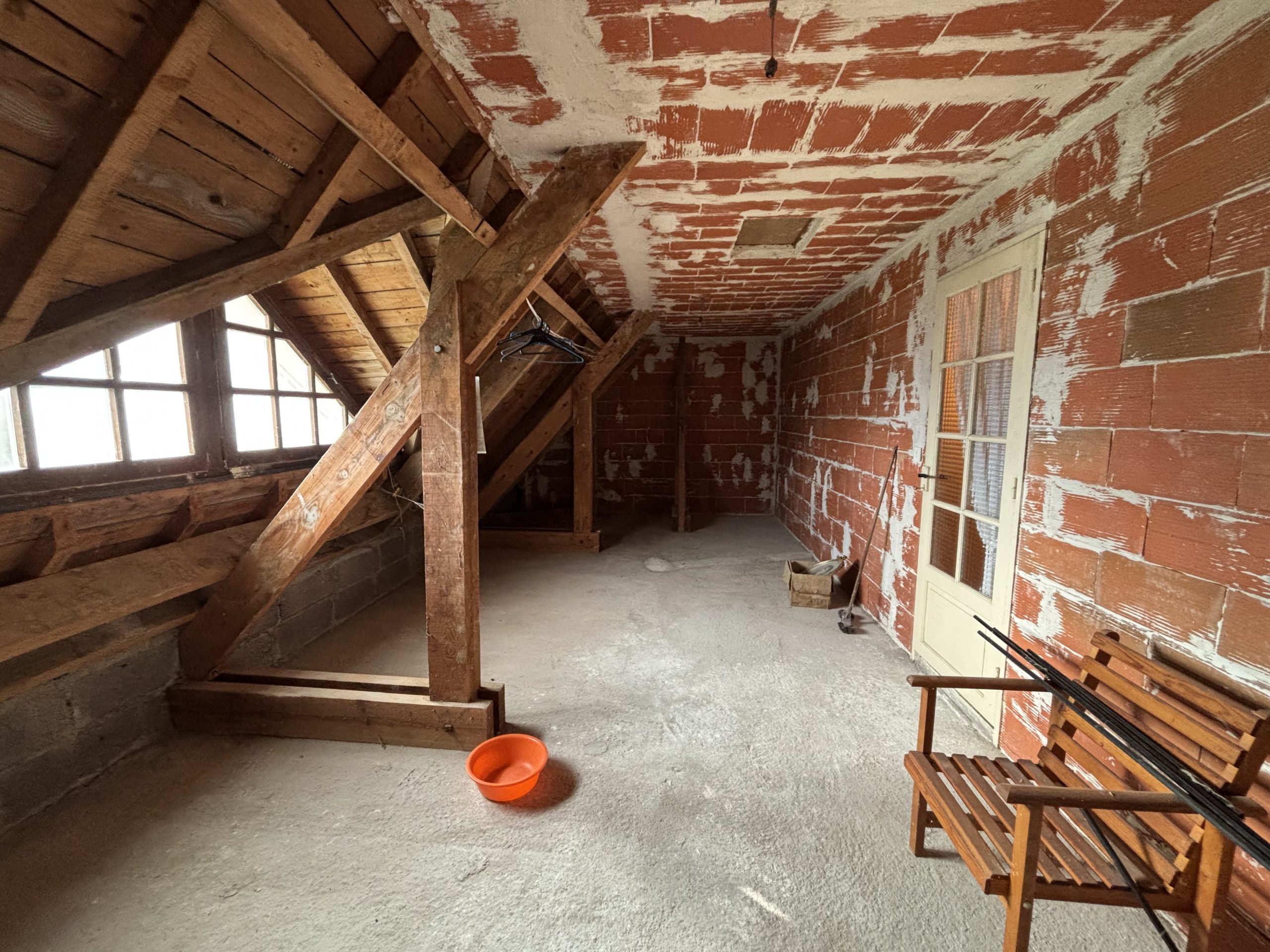 A l’étage un palier distribue deux chambres supplémentaires, une salle de bains, un WC indépendant et des combles aménageables offrant de belles possibilités d’agrandissement supplémentaires.