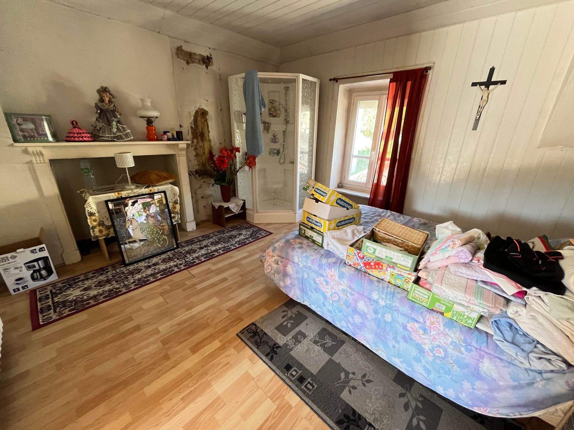 Anciennement deux habitations séparées, elle comporte aujourd’hui au rez-de-chaussée une entrée, deux cuisines, deux séjours et un cellier.