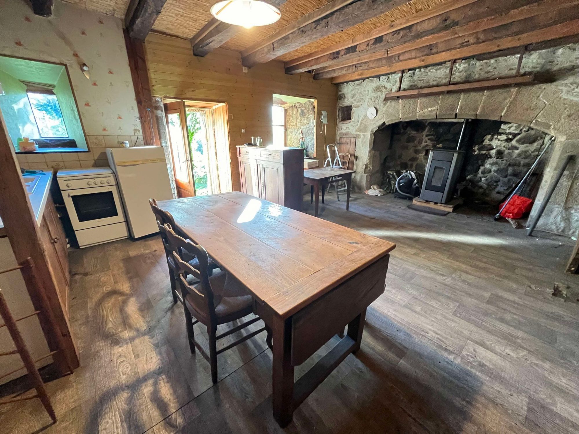 Nichée dans un hameau paisible, cette charmante maison en pierre à rénover, mitoyenne d’un côté, propose au rez-de-chaussée un séjour-cuisine avec cantou et poêle à granulés, une souillarde, ainsi qu’une salle d’eau avec WC. À l’étage, une grande chambre. Des travaux de rénovation sont à prévoir (remplacement des chiens-assis, assainissement individuel, isolation, rafraîchissement général et mises aux normes électriques).