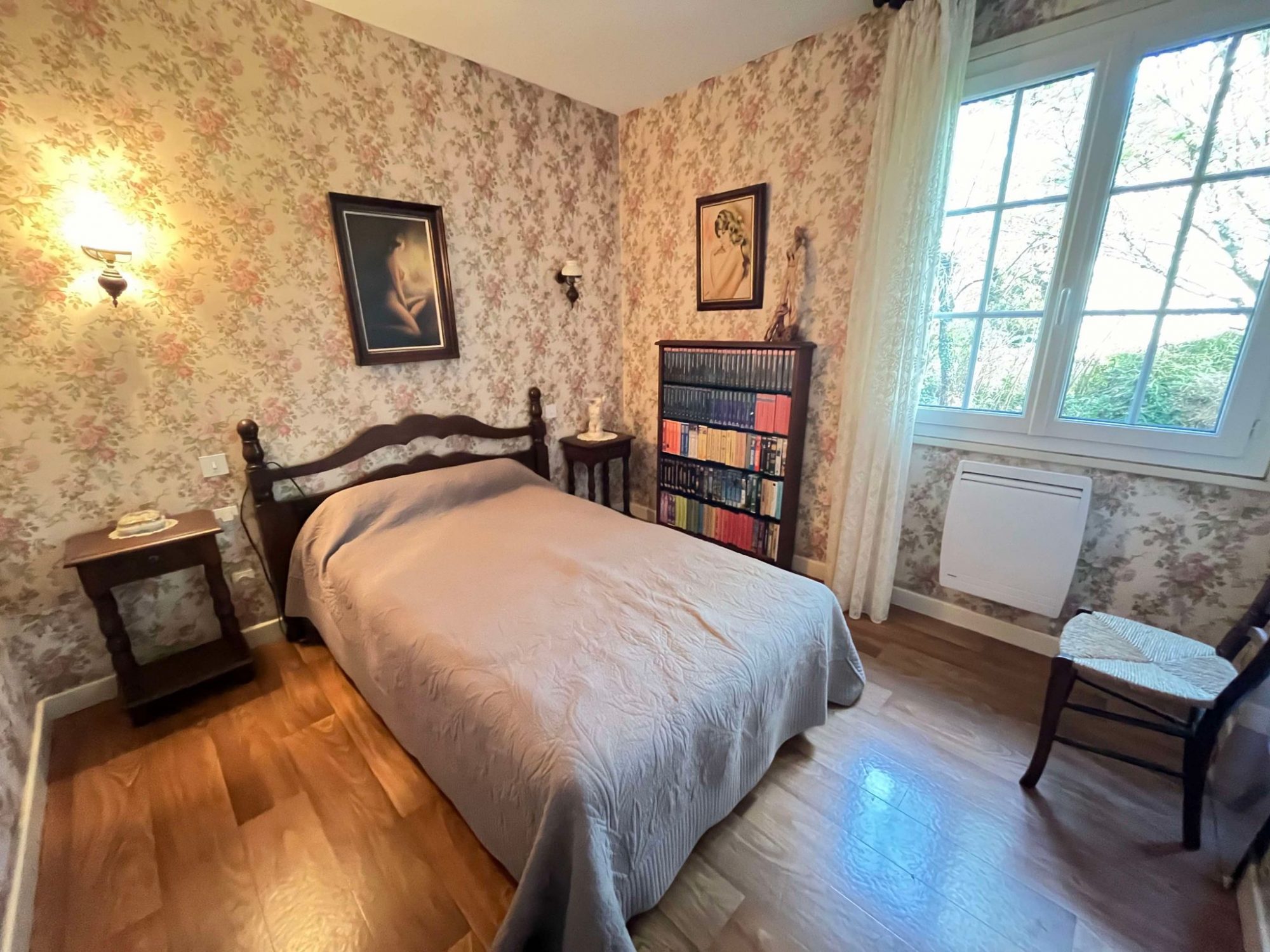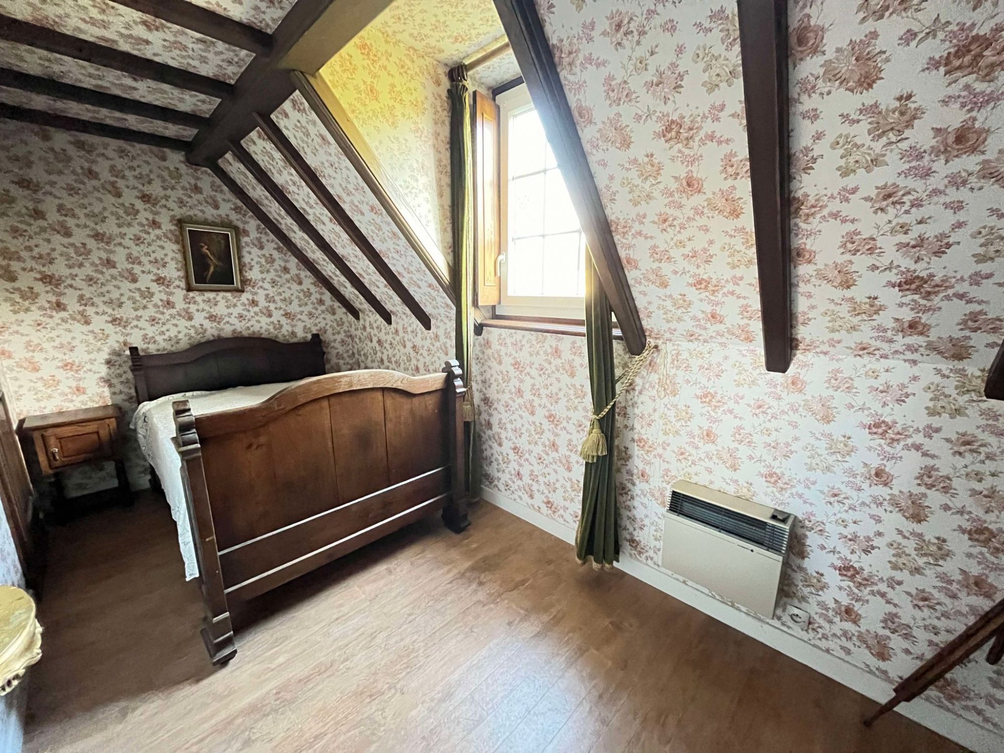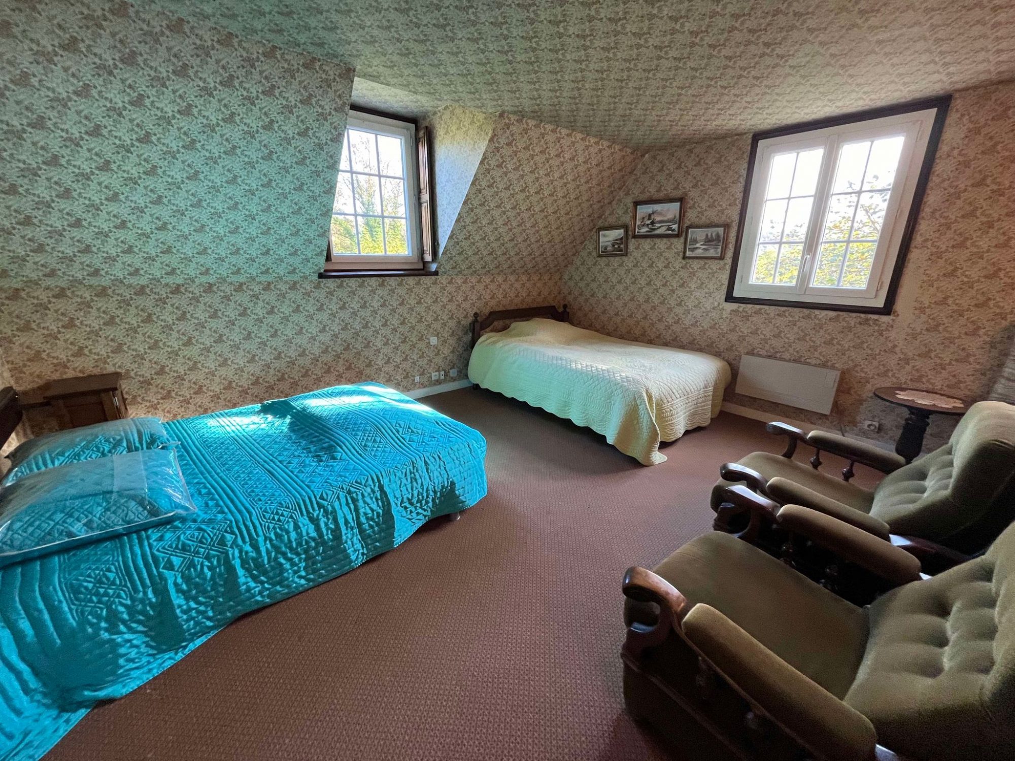 A l’étage un palier dessert deux chambres, un bureau/dressing et un WC avec point d’eau.