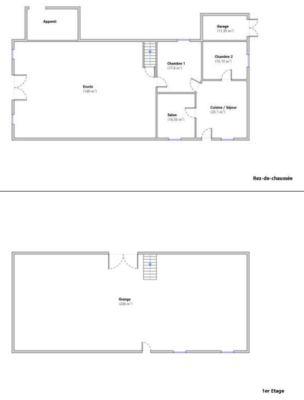 Au rez-de-chaussée, vous trouverez un séjour avec cantou, trois chambres et une écurie.