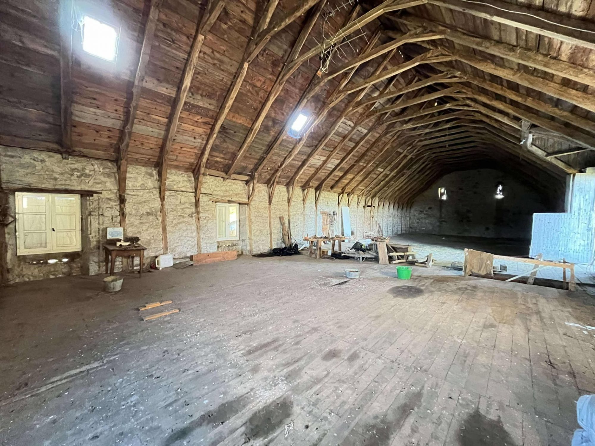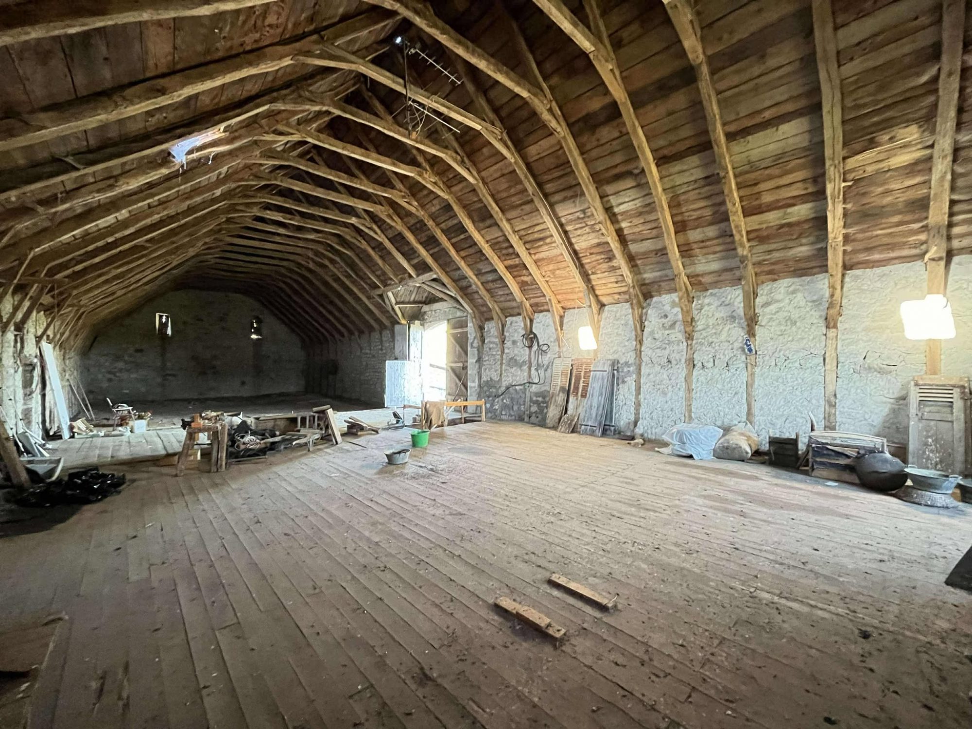 À l’étage, une grange de près de 229 m² au sol dotée d’une magnifique charpente, elle vous offre un espace vierge à aménager selon vos envies.