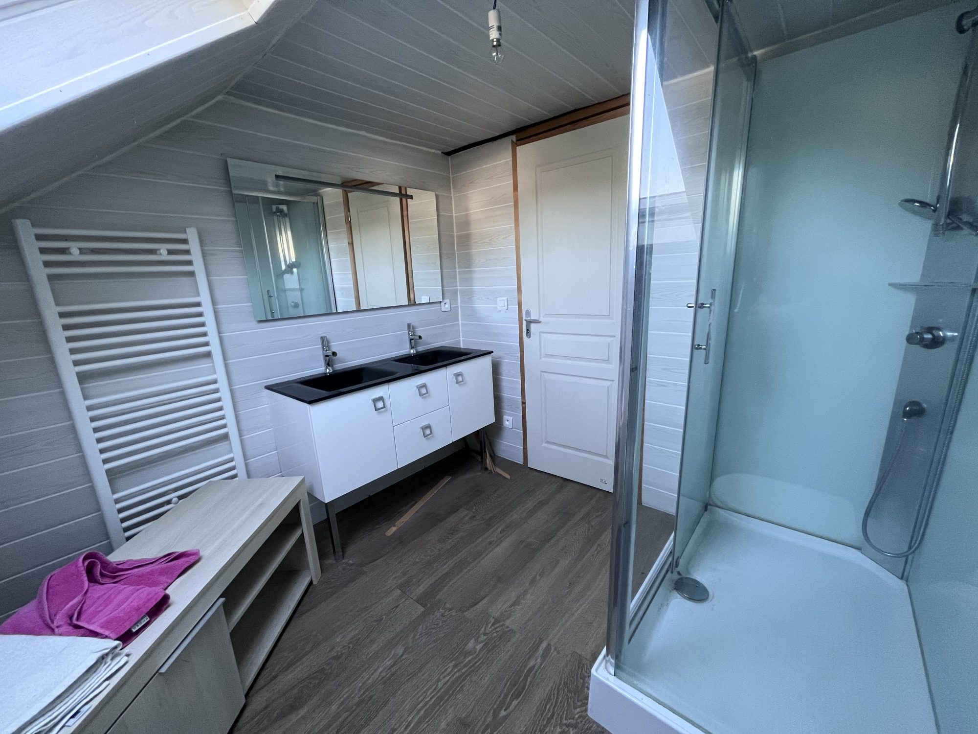À l’étage, un palier dessert deux belles chambres supplémentaires ainsi qu’une salle d’eau avec WC.