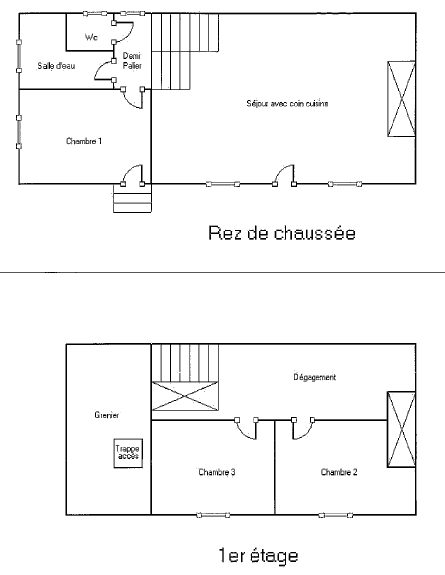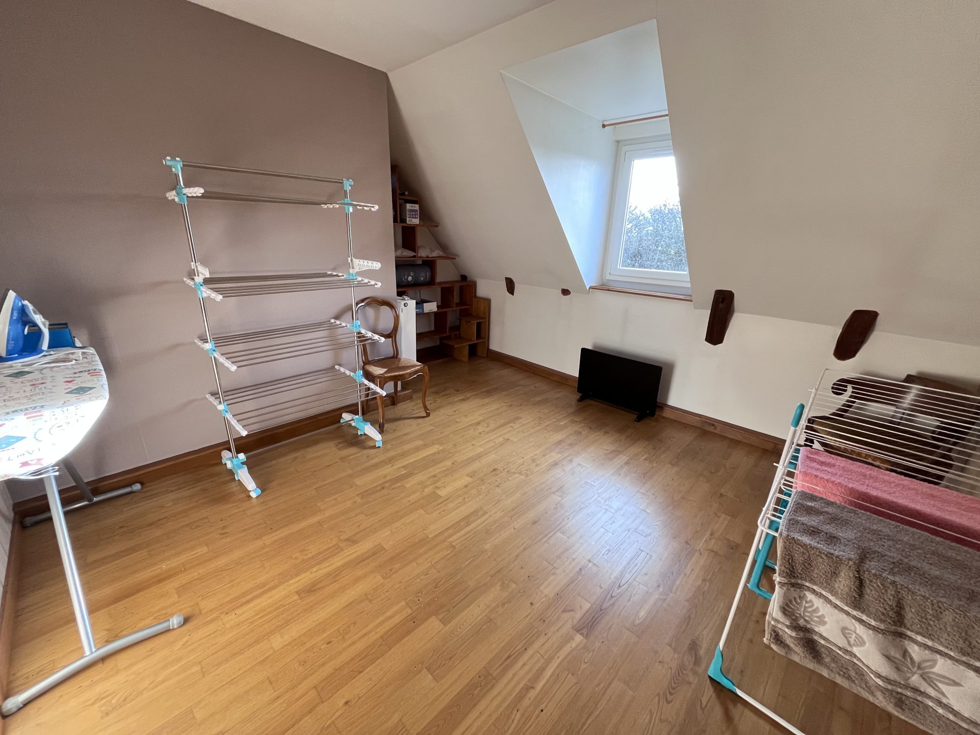 Un demi-étage dessert une chambre, une salle d’eau ainsi qu’un WC indépendant.